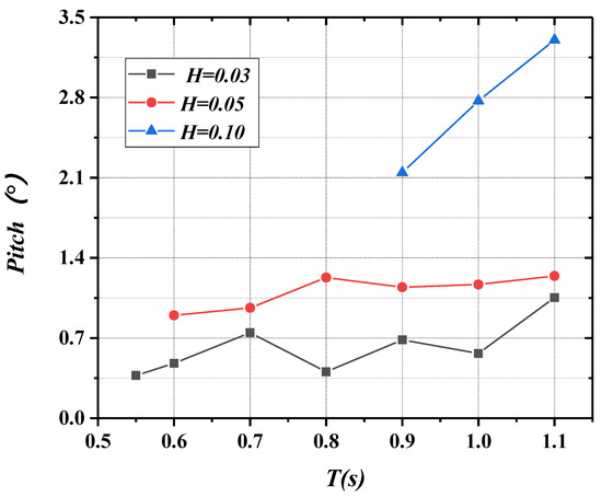 Variations of pitch with period and wave height.