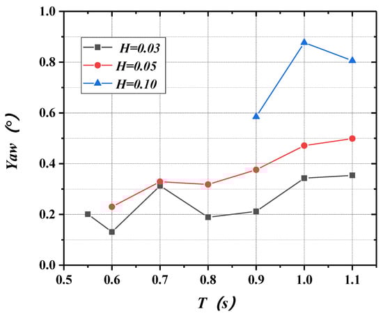 Variations of yaw with period and wave height.