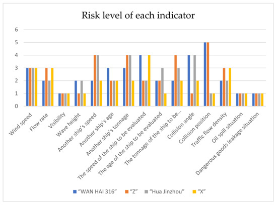 The risk level of each indicator of “WAN HAI 316”, “Z”, “Hua Jinzhou”, and “X”.
