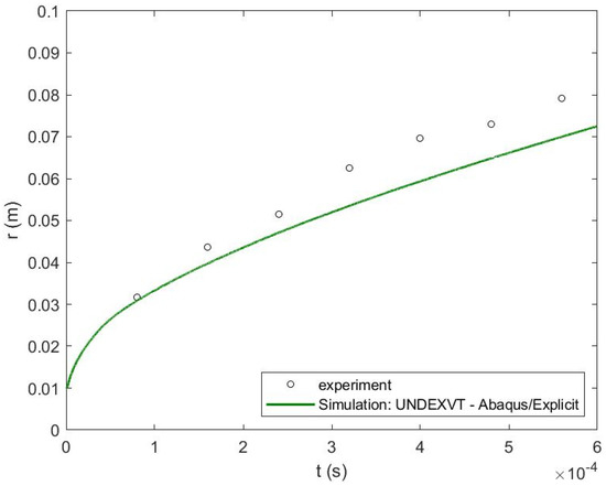 Time history of radius of the explosive gaseous bubble [25].