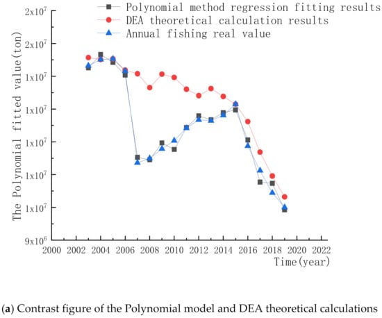 By using the above analysis, existing research and application either use the DEA method or fitting regression method. Factor utilization and technical efficiency and so on were studied, including the lack of convergence analysis of annual catch changes. The DEA method accounts for most of the research attributed to the DEA method recommended by FAO. Therefore, most of the support for fishery management is reflected in a certain aspect (such as fishing vessel, population, and technical efficiency and so on). The annual catch model is obtained by using a fitting regression algorithm. The factor utilization rate is studied by DEA, and the parameter values calculated by DEA are brought into the catch model for verification. Combined with the two results, the management of offshore fishing in China was analyzed. This study uses the integrated application of DEA and regression and conducts comprehensive investigation into factors while predicting the amount of annual fishing; the advantage of the combination is reflected. At the same time, the comprehensive analysis of the measures of China’s offshore fishery management is discussed by using the obtained results; this is the special feature and innovation of this study. The results offer help for the next steps in fishery management decision making and optimization.
