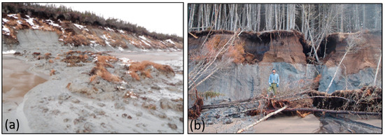 - Hoque, M.A.; Pollard, W.H. Stability of permafrost dominated coastal cliffs in the Arctic. Polar Sci. 2016, 10, 79–88. [Google Scholar] [CrossRef]