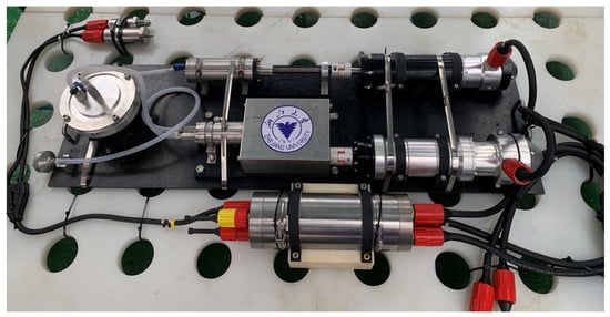 In order to check the device’s performance under a high-pressure environment, a 100 MPa high-pressure test was carried out on the whole in situ multi-stage filtering and preserving device of hadal microorganisms, including the control chamber and battery pack. The pressurization rate of the pressurization system is 2 MPa per minute, which is pressurized to 100 MPa.