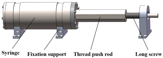 In order to inject RNAlater preservation solution directly into the device after the filtering sampling operation, the corresponding structure is designed to store the solution and complete the injection operation. The in situ fixed preservation structure adopts the syringe scheme, which can easily realize the preservation solution’s inhalation, storage, and push. All parts of the in situ fixed preservation structure are made of 316 stainless steel. We applied a polytetrafluoroethylene coating to the inner wall of the syringe to improve biocompatibility. The syringe can be filled with 250 mL RNAlater solution. RNAlater preservation solution is a non-toxic tissue preservation reagent that can quickly stabilize the tissue and protect non-frozen cellular RNA. The schematic diagram is shown in Figure 2.