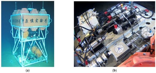 The field equipment diagram of sea trial as shown in Figure 14 and the sea trial results as shown in Table 4.The in situ multi-stage filtering and preserving device of hadal microorganisms was operated on the seabed for 13 h, and nine samples with different pore sizes were obtained. For the decontamination process, we filled the device with sterile water before starting the motor. A check valve was installed at one end of the device. The check valve needed a certain pressure to open. There was no medium exchange between the sterile water inside the device and the external seawater. The device filtered a total of 30 L of in situ seawater, and membranes with pore sizes of 3 μm, 0.2 μm, and 0.1 μm were preserved. The samples were stored in −80 °C cold storage. The success of the sea trial verified that the device is capable of working at full-ocean depth, which is expected to provide the necessary support for the establishment of a hadal microbial gene pool.
