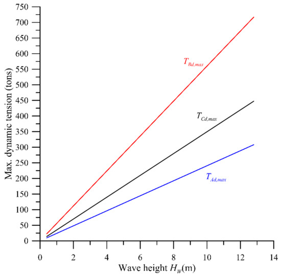 - The larger the wave height HW is, the larger the maximum dynamic tensions are, especially for ;