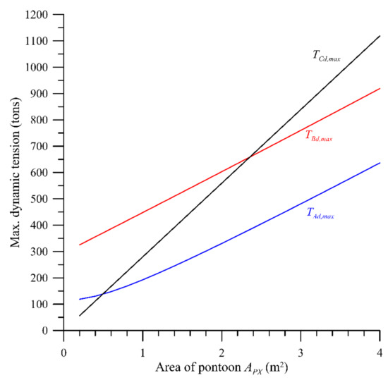 - The larger the area of pontoon APX is, the larger the maximum dynamic tensions are, especially for ;