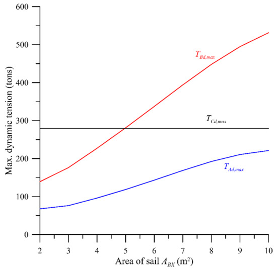 - The larger the cross-sectional area of sail ABX is, the larger the maximum dynamic tensions and are, especially for . However, its effect on the maximum dynamic tensions is negligible;