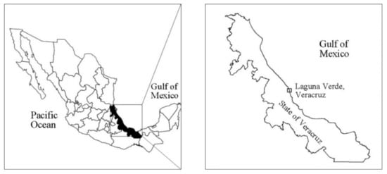 Location of the Laguna Verde nuclear power plant, Mexico.