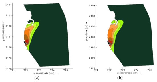 - Lesser, G.R.; Roelvink, J.A.; van Kester, J.A.T.M.; Stelling, G.S. Development and Validation of a Three-Dimensional Morphological Model. Coast. Eng. 2004, 51, 883–915. [Google Scholar] [CrossRef]