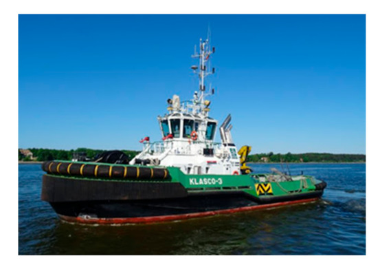 - KLASCO-3, Damen ASD TUG 2810 ICE. Available online: https://www.damen.com/es-es/news/2015/08/damen_delivers_asd_tug_2810_ice_to_klasco_lithuania? (accessed on 14 October 2020).