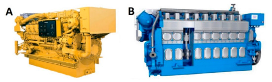 (A) Existing engine, CAT 3516C. (B) New engine, Wartsila 9L20DF.