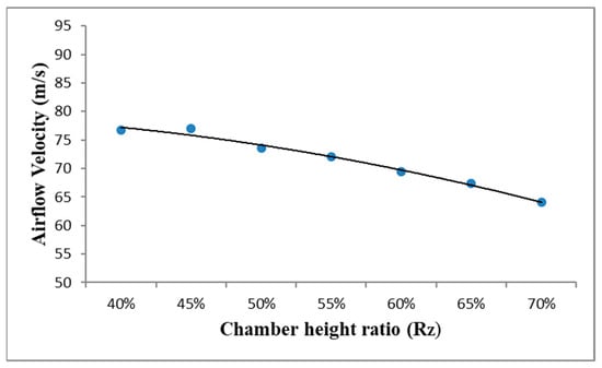 Airflow velocity corresponding to height-ratio RZ of OWC chamber.