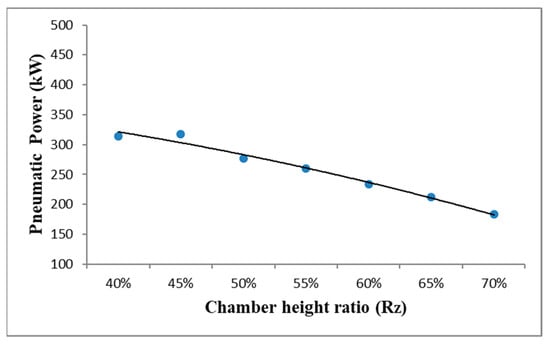 Pneumatic power corresponding to height-ratio RZ of OWC chamber.