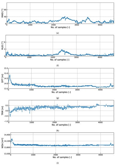 Further analyses of various voyage scenarios including navigational routes and operating environments are required to advance the model, and comparisons with CFD or model tests in similar conditions are required to reduce the gaps between the results obtained using fluid mechanics for ship design and data-driven models for eco-friendly vessels. In addition, more accurate predictions are expected if detailed weather data, including observations from ships, can be integrated into the model as an environmental load factor. As the periods of heave and pitch motions of the typical commercial vessel are much shorter than one minute [54,55], there has been a limitation on the comprehensive capture of the motion characteristics of the vessel according to the weather conditions at sea using in-service data at one-minute intervals. It is clear that the model can become more robust if the finer data set is acquired and converted into spectra to reflect the statistical characteristics (spectral moment) of the ship’s motion.