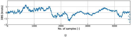Weather routing provides weather information around the anticipated route in advance. It has been reported that optimal route support services, which can help ships reach their destinations under various weather and sea conditions, can reduce fuel consumption by up to 3% [38]. The main aim of this study was to create a fuel consumption model with data that can be measured from on-board. From the practical point of view, few vessels are equipped with wave radars except ocean survey ships and special purpose vessels. Most cargo ships acquire 72, 48, or 24 h pre-weather forecast data for safe navigation from paid weather services subscribed by ship owners, or even worse cases, less accurate data is achieved. In contrast, Chapter V of the International Convention for the Safety of Life at Sea (SOLAS), 1974 [39] regulates that all cargo ships with more than 500 tons shall be equipped with equipment available for measuring wind speed and direction, and the real-time measurement onboard is fairly accurate. Although measured wind data cannot fully describe all environmental variables in the navigation area (especially wave characteristics), ocean waves are developed by the local wind which represents a significant portion of the wave characteristics [40,41,42]. Thus, this study included wind data as the main environmental variables in the navigation area. Additionaly, the influence of the external forces due to ocean currents was defined as the DBS.