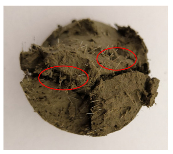 - The clay sample was prepared by sieving through a sieve with an aperture of 1 mm. Raw materials (cement, fiber, clay and water) were weighed based on the proposed test scheme. The initial moisture content was measured, and the water needed was calculated based on designed mix ratios. The cement content, fiber content, and water content used in preparing the sample was 20%, 1% and 80%, respectively, by percentage of dry clay weight.