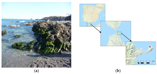 The Autonomous City of Ceuta is a Spanish enclave located in North Africa, on the southern coast of the Strait of Gibraltar. The peninsula where it is located has a surface area of 20 km² and a perimeter of 28 km. The coast is composed of heterogeneous environments conditioned by its natural configuration, as well as by the intense port activity. At least 70% of Ceuta’s coast is a natural hard bottom [19]. The coast of Ceuta is located in the Atlantic-Mediterranean interface, which causes important environmental and biogeographic gradients [20]. The very irregular underwater topography of this coast determines a great diversity in habitat types. The surface waters that enter from the Atlantic have an important influence, especially in the northern part of this coast [21].