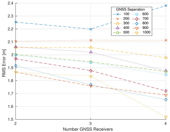 position error with increasing GNSS spacing in all three experimental configurations, and are representative of the performance we observed throughout our study.