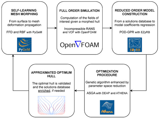 - Demo, N.; Tezzele, M.; Gustin, G.; Lavini, G.; Rozza, G. Shape optimization by means of proper orthogonal decomposition and dynamic mode decomposition. In Proceedings of the Technology and Science for the Ships of the Future: Proceedings of NAV 2018: 19th International Conference on Ship & Maritime Research, 20–22 June 2018; IOS Press: Amsterdam, The Netherlands, 2018; pp. 212–219. [Google Scholar]
