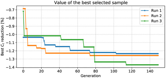 In this work we make use of the active subspaces extension of the genetic algorithm (ASGA) introduced in [16]. Such optimization method has been selected as it outperforms standard GA, especially when high-dimensional target functions are considered. Its performance have been proved both for classical academic benchmark functions and for industrial CFD test cases.