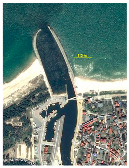 Ustka (Figure 1) is a medium Polish port located on the Baltic Sea serving around 100 merchant ships per year with fishing and pleasure craft traffic. The maximal length of ships before the presented research was L = 60 m, B = 12 m, and T = 4.0 m with several operational and weather restrictions.