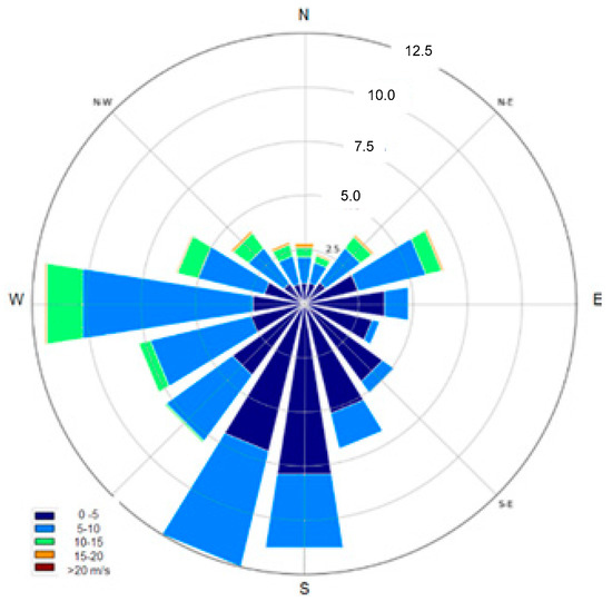 The wind rose for Ustka Port. (wind 1 h averaged, data from 2000–2020).