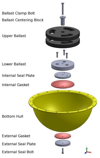 Exploded view of the developed wave measurement buoy hull assembly.