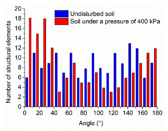 Directional particle distribution of structural elements under a stress of 400 kPa.