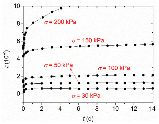 Creep curves of soft marine soil under different stresses.