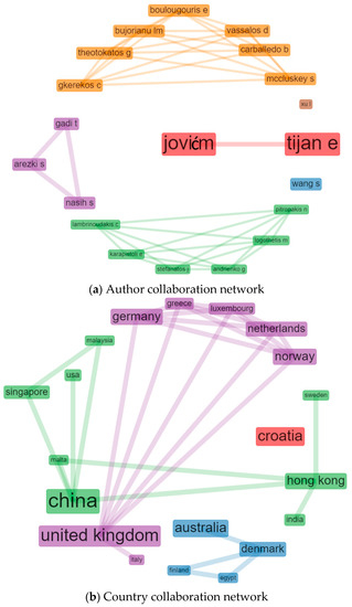 25]. On the country level collaboration, scholars from European countries seem to collaborate strongly, having the United Kingdom as the center (violet cluster). A similar pattern is observed among scholars from Asian countries (green cluster). Although Croatian scholars published multiple studies in the topic, they have not collaborated with scholars from other countries so far.
