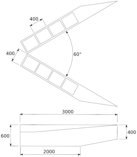 The main cause of the differences in the two models is that the concept model used a much lower freeboard compared to the model presented in this study. The new model, however, represents an improvement over the concept as significant overtopping occurred for tests at a of 2.00 m at full scale, whereas the initial concept model only reported significant overtopping at of 2.50 m and higher. In addition, while the presented model produced power of a similar magnitude as that of the initial concept model, it did so during tests with lower values, showing a higher efficiency in the system.