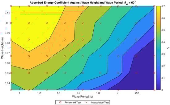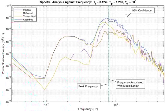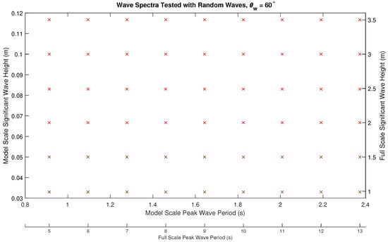 = 60°. The peak wave period parameter of this test represents a frequency of 0.781 Hz, close to that of the model frequency, calculated from Equation (