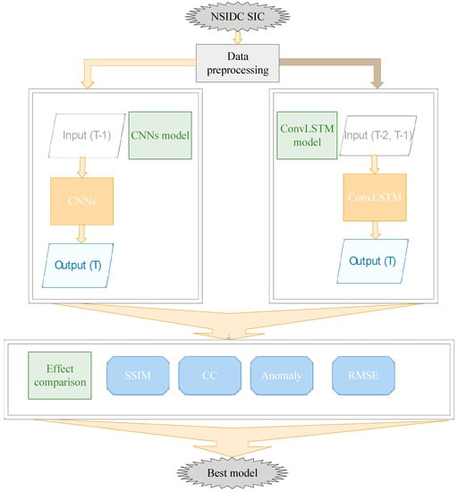 In this study, the most suitable model for daily SIC prediction was selected by comparing the prediction effect of the CNNs and ConvLSTM. The main factors are shown in Figure 2.