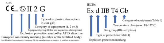 The principles for the classification of equipment proofed for use in areas with a higher risk of explosions are similar in most countries, and they are based on requirements introduced by the International Electrotechnical Commission (IEC) []. Despite this fact, many local modifications and variants exist.