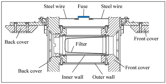 The structural cross-sectional view of the temperature-retaining cylinder is shown in Figure 8. It is divided into an outer tube and an inner tube with a filter screen. A cylinder cover is arranged on each end cover, and a torsion spring is installed between each cylinder cover and the end cover. When the cylinder cover is opened, the two covers are connected by steel wire and a fuse, and the torsion spring is in a compressed state. When the fuse is energized and blown, the two cylinder covers are closed under the action of their respective torsion springs, and the sea water and zooplankton samples are sealed in the cylinder.