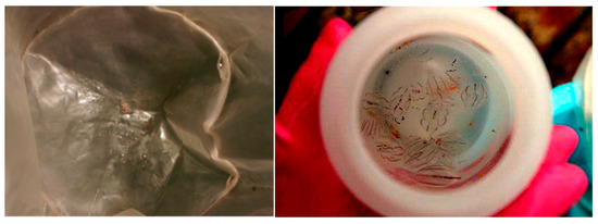 The fidelity samples were sent to a biological laboratory for research; the collected samples could not be viewed directly because opening the lid will cause the sample to lose its original temperature and pressure. Through the samples remaining in the trawl net and in the sample cylinder No. 3 in the first test (Figure 12), it was determined that the sample was obtained successfully.