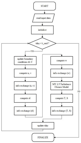 Combining the numerical scheme and the virtual-grid method, the general algorithm of UFDECOM is illustrated in a flow diagram (Figure 3). The information-exchanging subroutine is inserted between any two independent processes.
