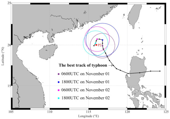 It can be observed from Figure 5 that the forecasting effect of P2 is slightly worse when SWH is added to the input feature, while the forecasting effect of P2 is improved when the WS is considered in the input feature. This phenomenon indicates that the wind has a greater impact on MWP than SWH at P2. After reviewing the data, it was found that P2 encountered super typhoon TUYU at 2100UPC on 31 October 2018 in Figure 9, which brought stronger and more sustained winds [36]. This implies that when the wind is severe, it has a greater impact on MWP, while SWH is also affected by the wind and has a slightly less impact on MWP. When the wind is calm, its impact on MWP is much smaller, SWH plays a major role and has a greater impact on MWP. Thus P2 has a bit of worse effect.