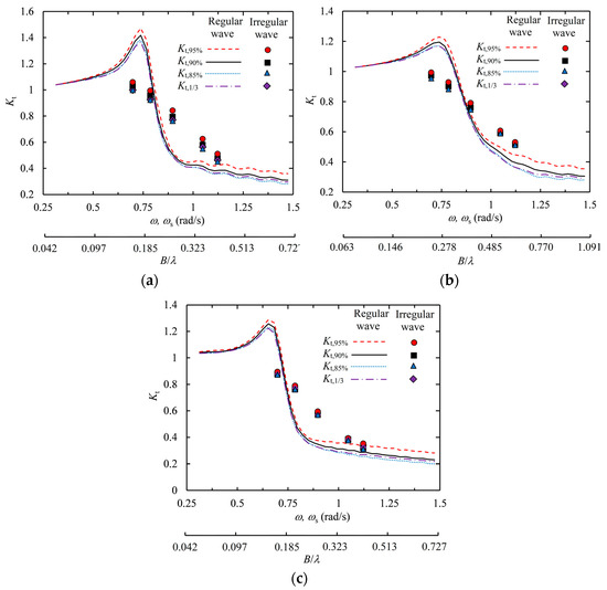 Representative transmission coefficients Kt,95%, Kt,90%, Kt,85%, Kt,1/3 in regular and irregular waves: (a) FB#1, (b) FB#2, (c) FB#1L.