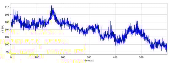Graph of sound pressure level (SPL) as a function of time produced automatically by the system.