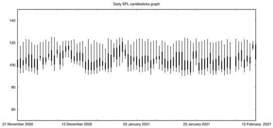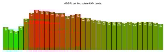 In order to provide a first glance of third octave levels, building on previous experiences [55,56], by means of chromatical and numerical information as a function of time of the day, we developed a web frontend (Figure 7) that can be accessed at [57].