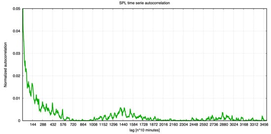 To highlight other kinds of temporal patterns, we focused on abiotic sounds such as winds and waves. According to [66,67], the wind contribution should extend throughout all the spectrum recorded in this work, while surface waves cause mostly infrasonic noise at frequencies from 10 to 100 Hz.