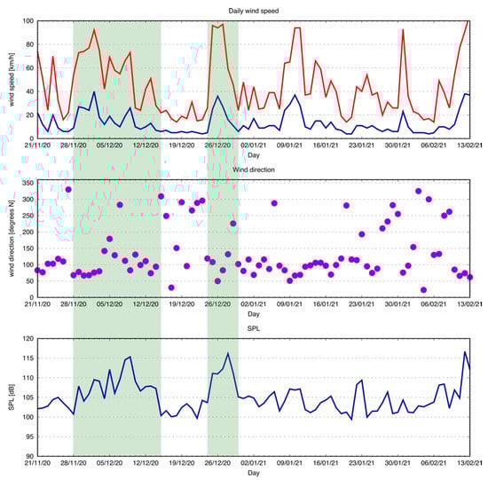 As a first test, we therefore compared the time series from wind speed and direction recorded daily in the port of Trieste with the SPL time series (Figure 16 and Figure 17).