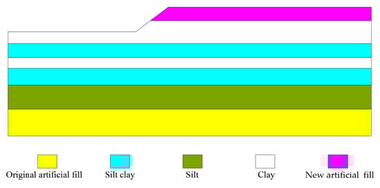For the case study analysis, the left and right surface boundaries of the model were constrained horizontally while the bottom surface boundary of the model was fixed. The magnitude of the ultimate force was determined using the Mohr–Coulomb theory [38].
