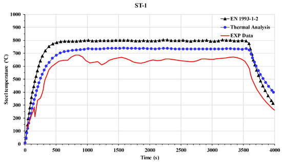 Steel temperature over time at ST-1.