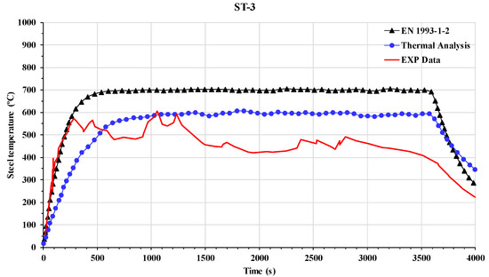 Steel temperature over time at ST-3.