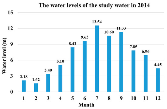 The water level is an important factor of ship maneuvering behavior. There are significant differences between ship domains in different water levels. The Wuhan Maritime Safety Administration provided the water levels in each month in 2014, and the comparison diagram of which is shown in Figure 10. In February, the Yangtze River was in the dry period, and the water level was lowest. In July, the Yangtze River was in the wet period, and the water level was highest. Therefore, the ship domains in the wet period and in the dry period were selected as samples to be statistically analyzed respectively in the experiments.