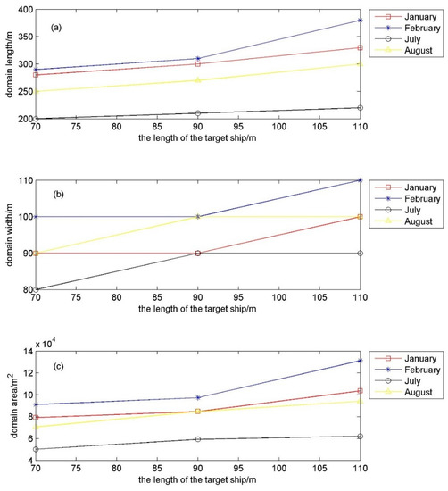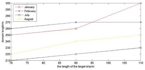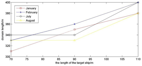 From the results of the size of the domain in four months, the ratio of the domain’s size to the ship’s size in each month is obtained in Table 3.