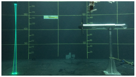 For the experiments at Cnr-Inm, the ADV is mounted to the towing carriage. In addition, a seeding mast mounted on the carriage is placed upfront of the ADV. The seeding mast consists of a cylinder beam of 15 mm in diameter supporting a tube of 8 mm. Twenty openings along a vertical section of 800 mm releases the seeding particles. The default accuracy of the ADV is reported as ±1% of the measured value [23], i.e., ±0.01 m/s for a flow velocity of 1.0 m/s. However, an adequate operation of this device also depends on the density of particles in the water. In order to account for this, the signal correlation is preserved for the entirety of the experiments at a rate higher than 80%, hence the reason for using a seeding mast at the tow tank (Cnr-Inm). Furthermore, ADV measurements are corrected for the presence of spikes by using the method proposed by [24].